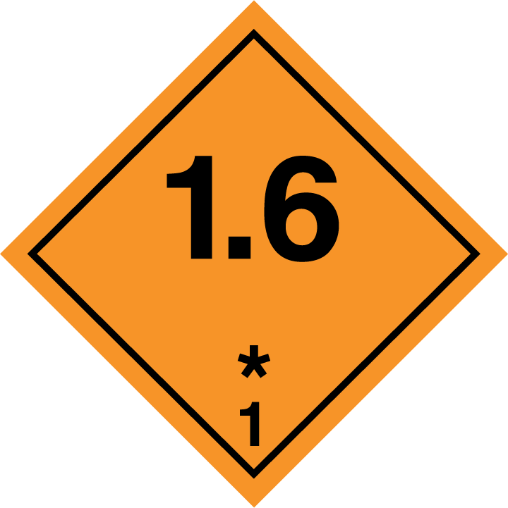 Etiqueta adhesiva homologada de ADR explosivos modelo 1.6 grupo de compatibilidad personalizable.