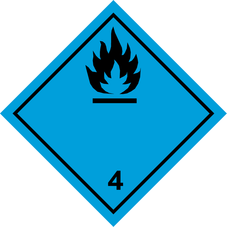 Etiqueta adhesiva homologada de ADR materias que en contacto con el agua desprenden gases inflamables modelo 4.3